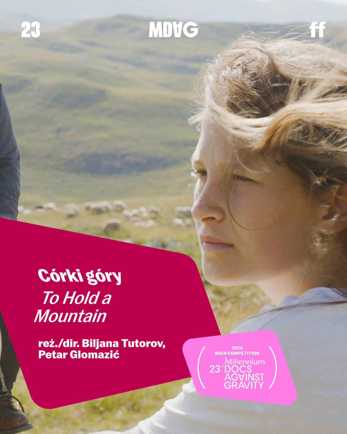 [Grafika: na zdjęciu młoda kobieta, w tle pastwisko; napis: Córki góry To Hold a Mountain reż./dir. Biljana Tutotrov, Petar Glomazić]